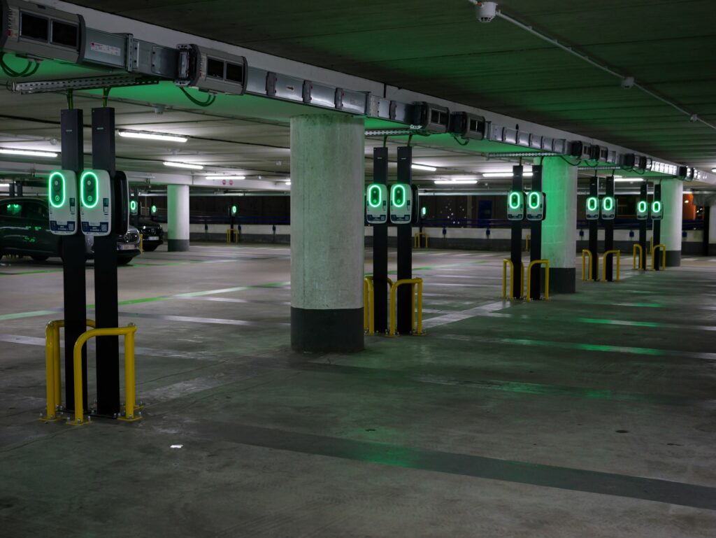 At Brussels Airport, there are several parking garages with a total of 674 charging points for electric vehicles. The simultaneous use of these charging points leads to high energy demand, which the operator does not want to exceed to avoid additional costs due to peak loads. Therefore, Interparking was looking for a solution to efficiently manage the charging infrastructure and optimally utilize the grid capacity.