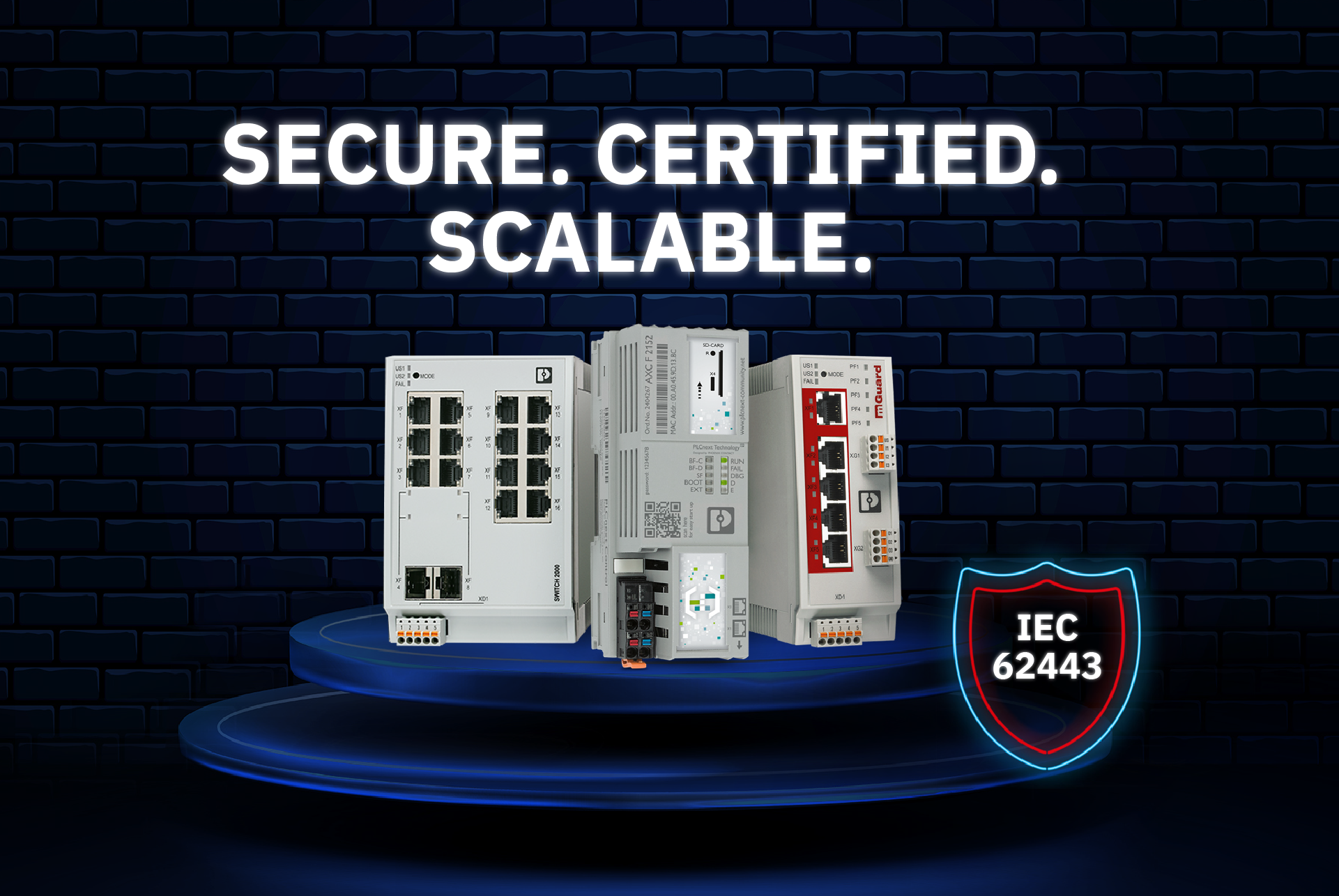 Security is not an add-on — it’s integrated from the start. From controllers and firewalls to network components: many of our solutions are already certified according to IEC 62443-4-2. In fact, we offer a double-digit number of certified products that meet these requirements – and more are yet to come.