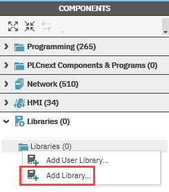 - In the COMPONENTS area, open the Libraries (x) section (where the x is the number of libraries you have there already).