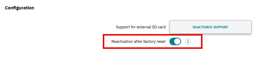 - Enable the Reactivation after factory reset checkbox.