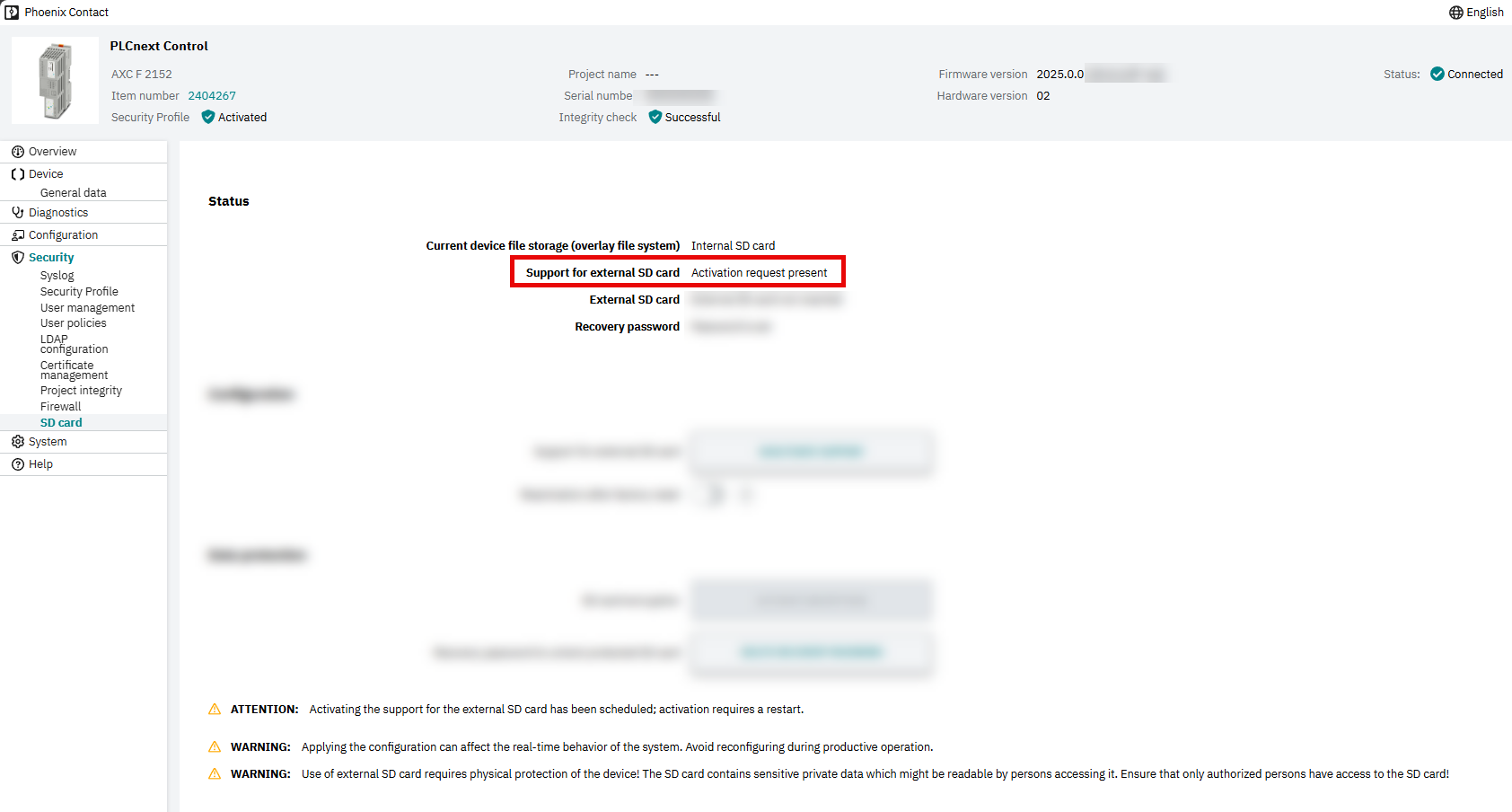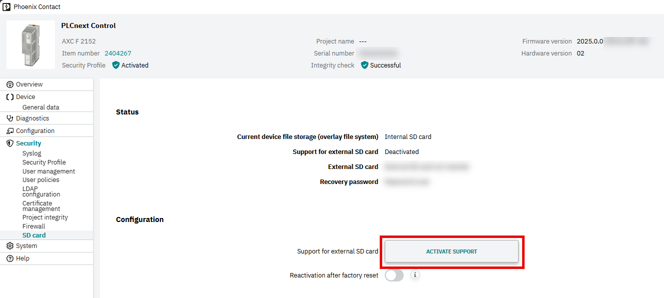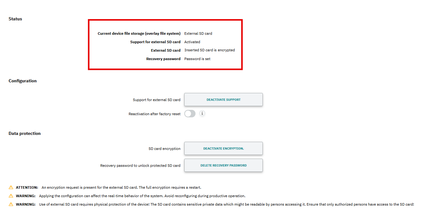 Please also note the general information on handling encrypted SD cards in the main PLCnext Technology - Info Center.