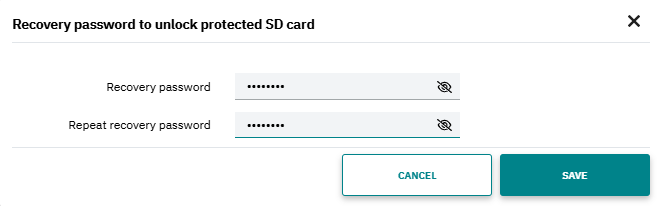 ↪ The Recovery password to unlock protected SD card dialog opens.