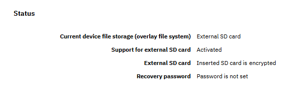 To use an encrypted sd card, you must first activate support for the external SD card. Proceed as follows: