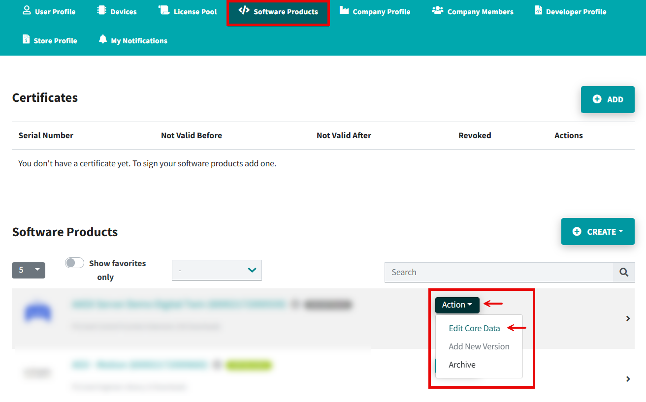 - Open the Software Products tab.
